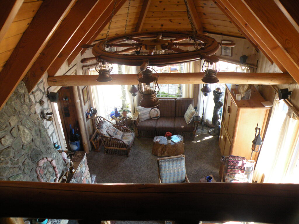 The inside of the house has a nautical theme which is appropriate considering that it sits right on the beach. In the Navy room, Pierre explained that his mother had hand touched up the paneling with blue paint – the touch up is subtle and greatly enhances the paneling. The furniture in the Turquoise Room was custom made for the room using trees harvested at the lake – these trees had been in a forest fire and the furniture is one way of preserving their legacy.